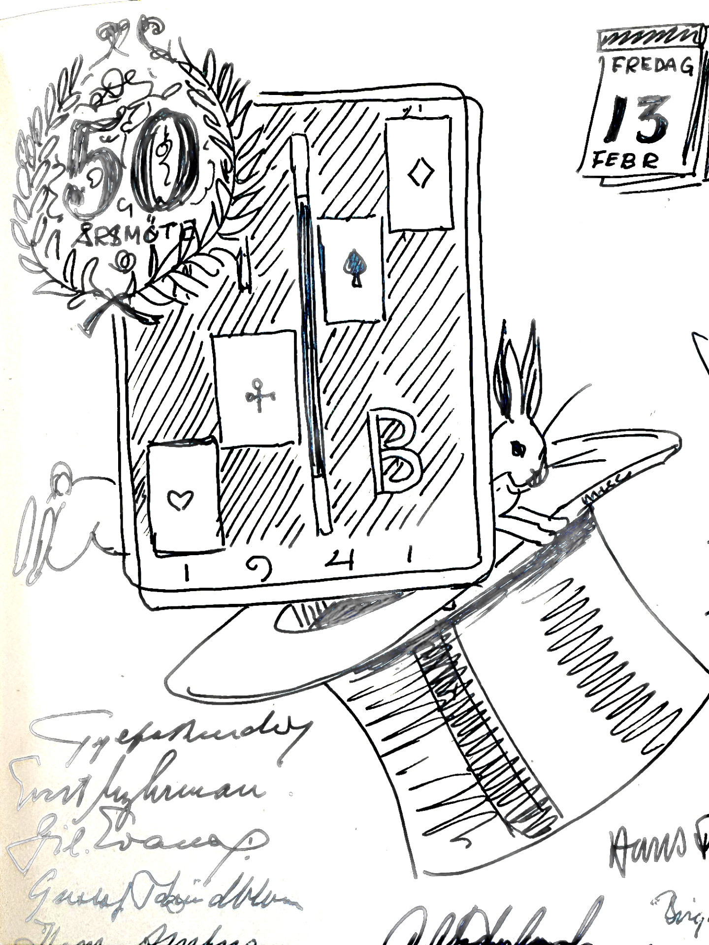 Han blev hobbymagiker efter att han sett Brazil Jack trolla. Han var med om att bilda Svensk Magisk Cirkel, och han medverkade som conferencier och framförde loppan Elvira i Svensk Magisk Cirkels offentliga föreställningar på Konserthuset under flera år. Han gjorde många illustrationer till tidningen Trollkarlen, bland annat omslaget, samt emblemet och förtjänsttecknet. Han var klubbmästare och hedersledamot i